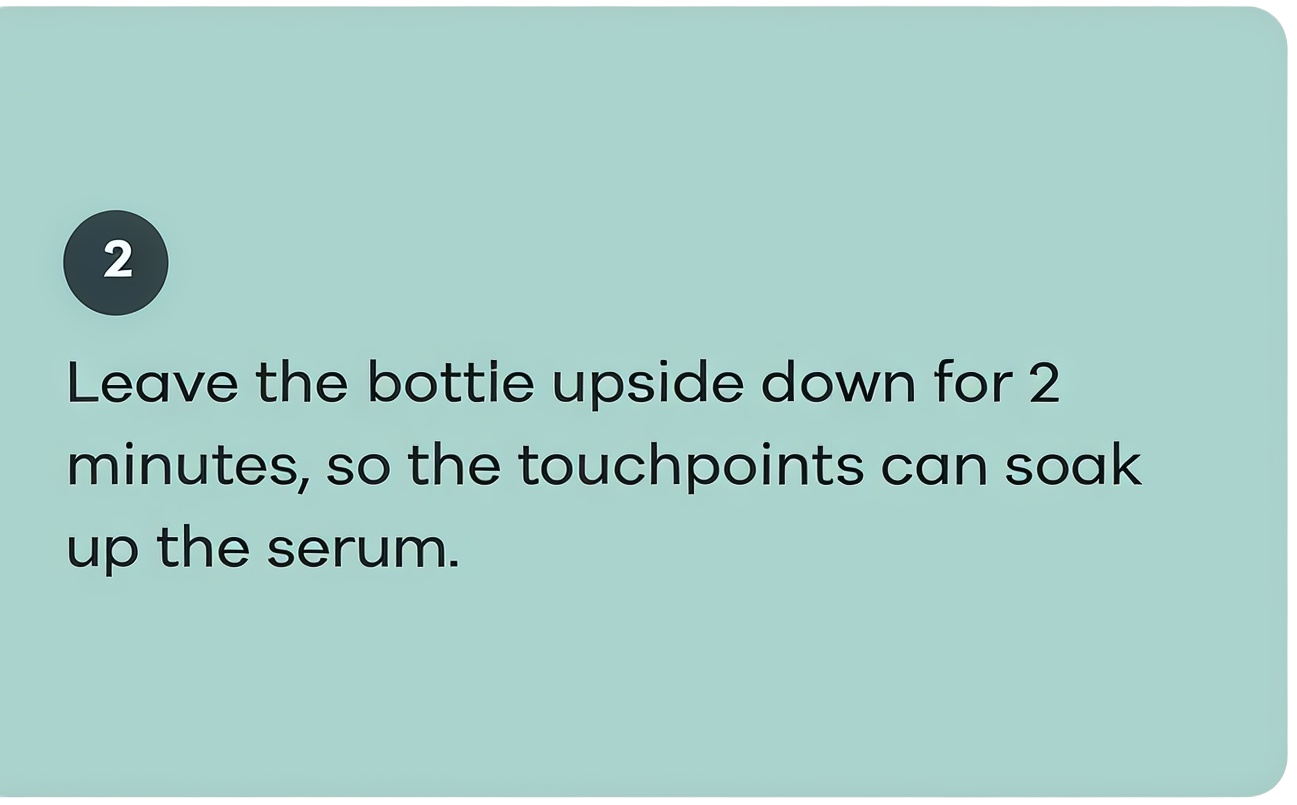 Leave the bottle upside down for 2 minutes, so the touchpoints can soak up the serum.